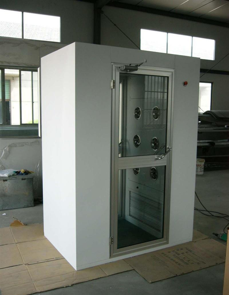 風(fēng)淋室應(yīng)用于微電子、光電、半導(dǎo)體、醫(yī)藥、食品、化工、航空、汽車、印刷、實(shí)驗(yàn)室等各個(gè)無塵車間與非無塵車間、階梯潔凈度車間中,用于從低潔凈度房間進(jìn)入高潔凈度房間過程中除去人各部位大于0.3微米粉塵顆粒,以免進(jìn)入潔凈房后帶去污染。同時(shí)也起到氣流緩沖作用,因?yàn)樵陂_門的過程中,附帶有空氣的流動(dòng),風(fēng)淋室很好的把氣流流動(dòng)停于風(fēng)淋室內(nèi)部,很好的避免了空氣流動(dòng)所帶來的空氣污染。